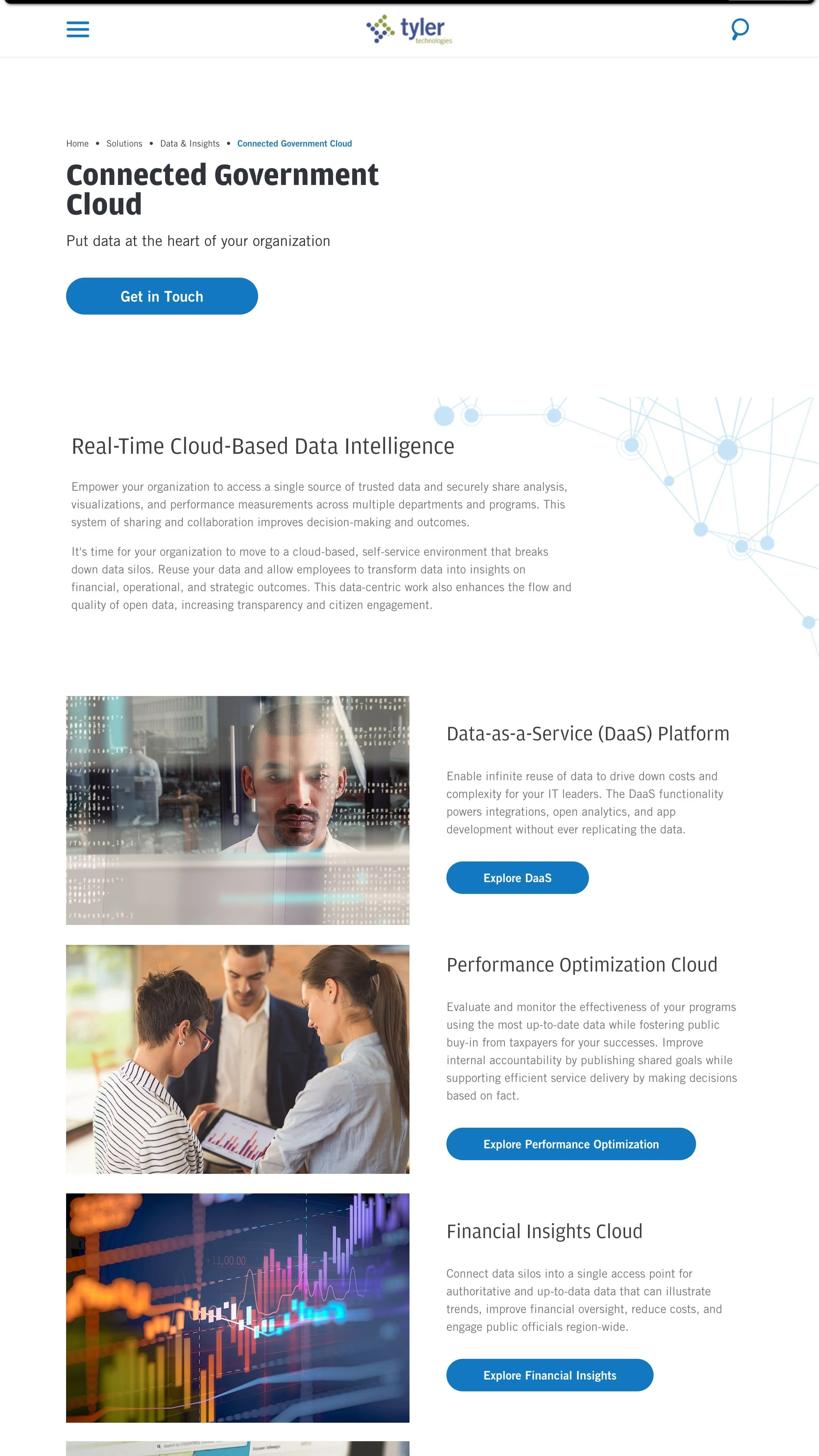 With the acquisition of Socrata, Tyler Technologies, the largest government software provider in the U.S., needed to update its solution and product webpages to include Socrata’s data platform.